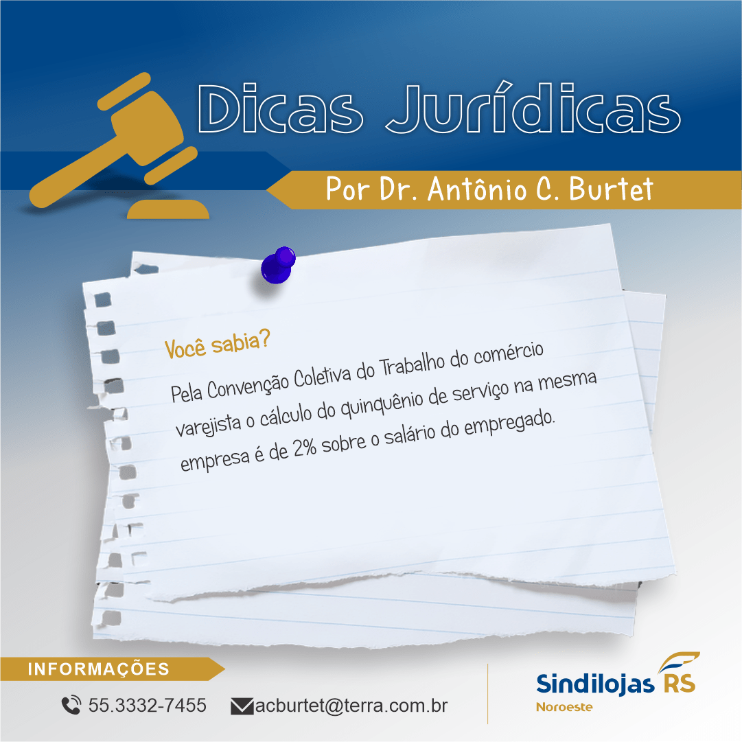 Atenção empresário, fique atento as Dicas Jurídicas, semanalmente o Dr. Antonio C. Burtet, depto. Jurídico Sindilojas Noroeste, traz informações relevantes para sua empresa. Curta e