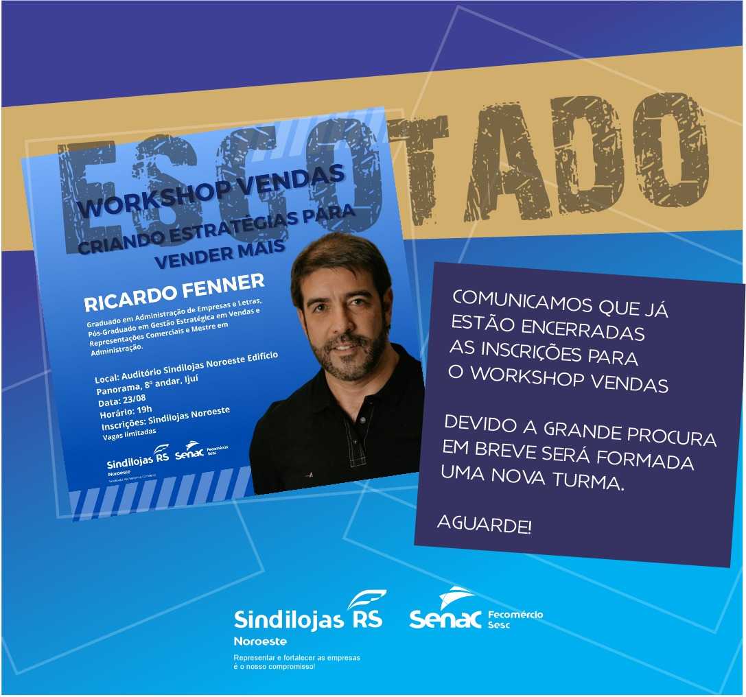 Menos de 48 horas foram suficiente para preencher as sessenta vagas para o Workshop Vendas, o curso será ministrado por Ricardo Fenner, graduado em Administração